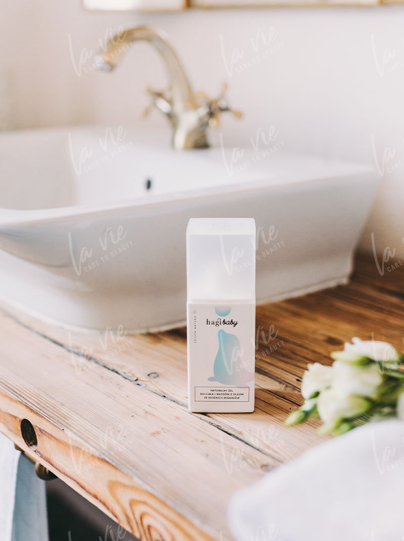 Nasz naturalny żel do ciała i włosów zawiera bardzo delikatne środki myjące pochodzące z kokosa, olej ze słodkich migdałów, inulinę, d- pantenol i żel z aloesu oraz cenne ekstrakty z bawełny i bławatka. Całość jest czystą przyjemnością dla Ciebie i Twojego maluszka.